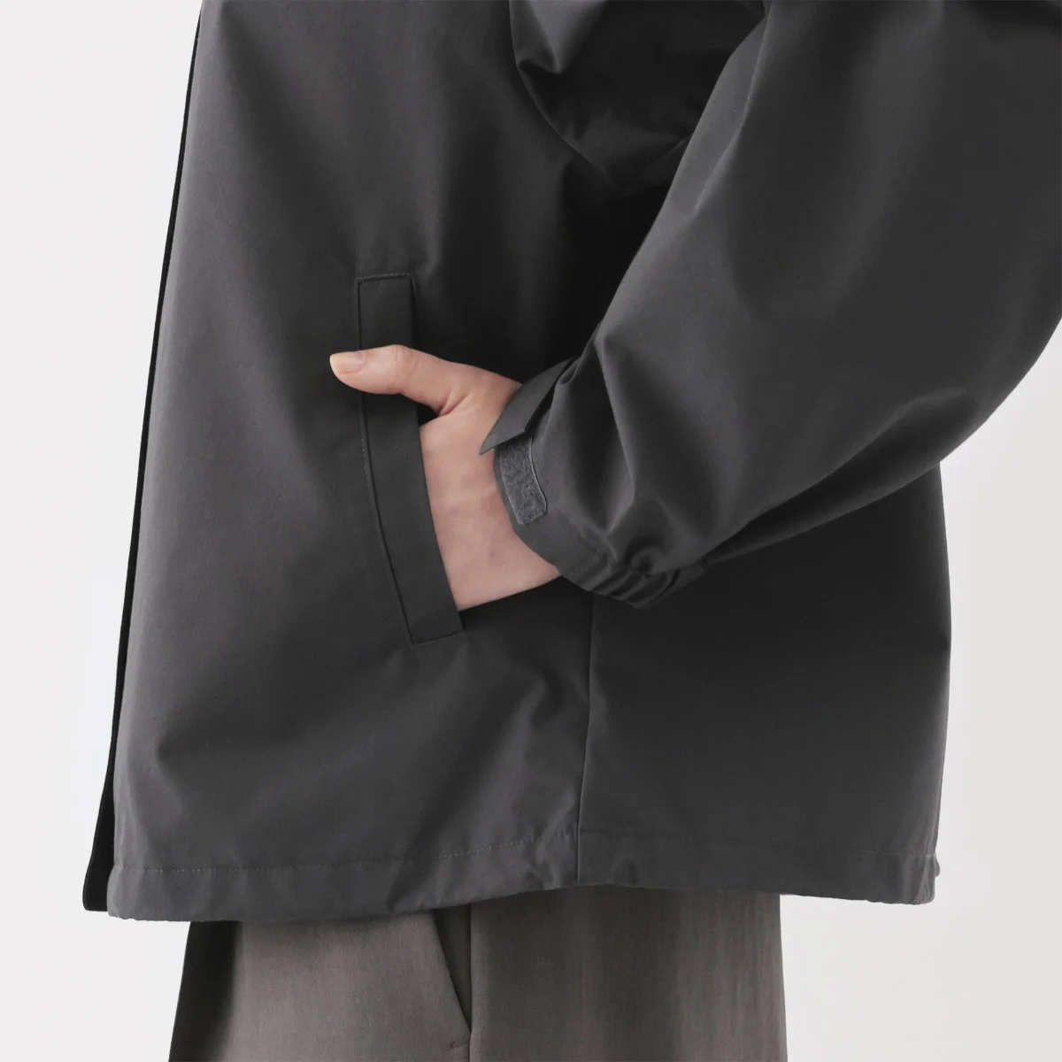 Áo Khoác Có Mũ Chống Thấm Nước Nữ Chất liệu vải chắc chắn đã được xử lý chống thấm nước. Bông là bông hữu cơ. 65% bông, 35% nylon Sản phẩm này sử dụng 100% nylon tái chế cho cơ thể. Sản phẩm có màu tối có thể chuyển màu do ma sát trong quá trình sử dụng hoặc tiếp xúc trong điều kiện ẩm ướt. Khi giặt, rửa riêng với các vật dụng khác. Chống thấm nước (dễ đẩy nước) Sản Xuất Tại Campuchia